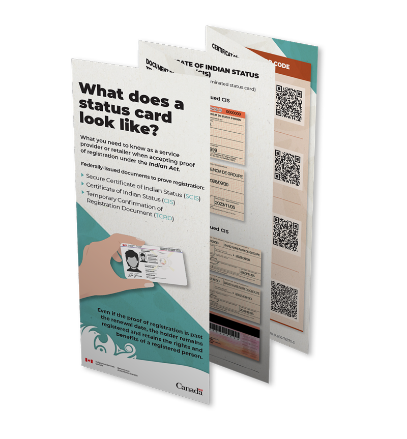 To order the brochure What does a status card look like?, email: sc_mc@sac-isc.gc.ca