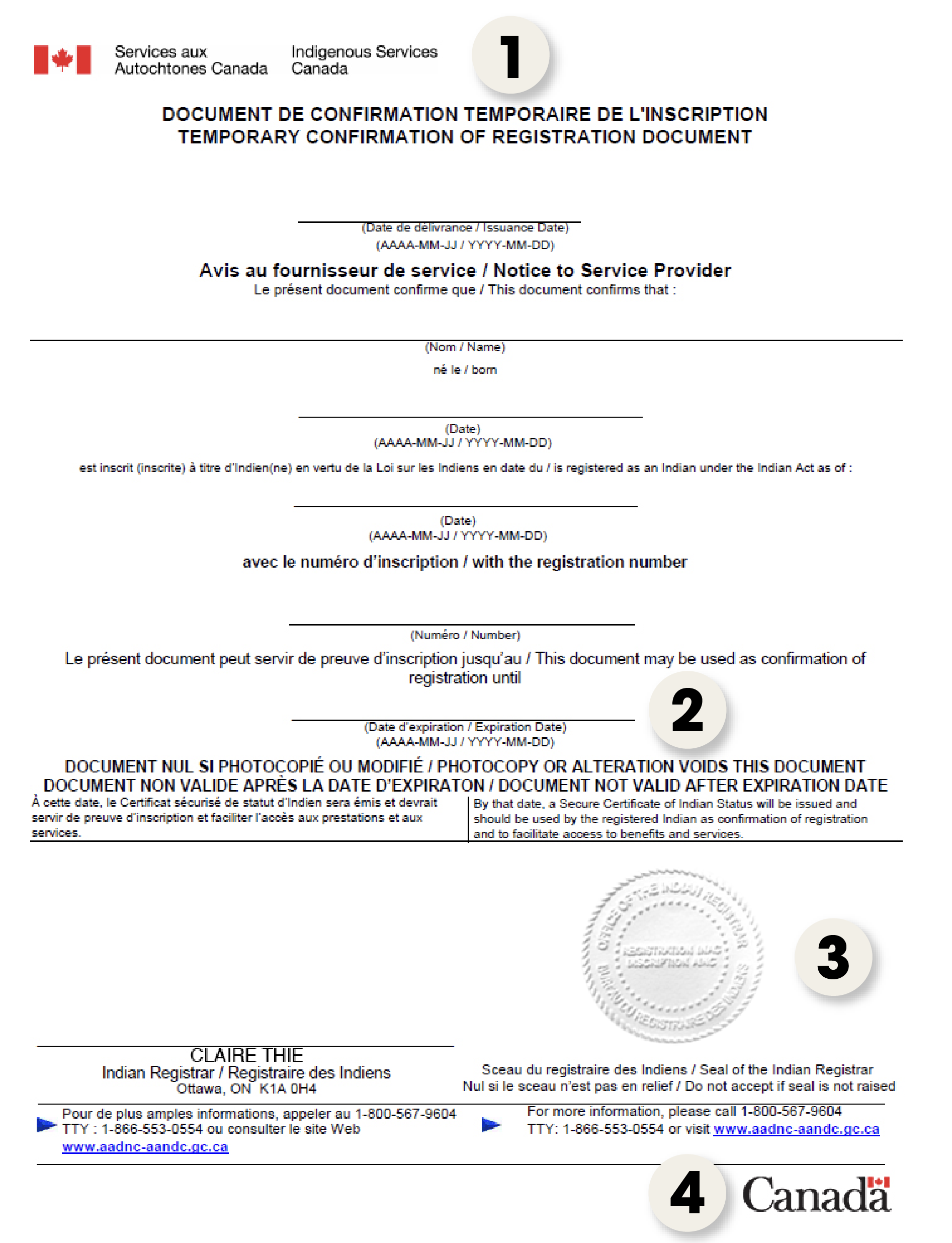 A Temporary Confirmation of Registration Document (TCRD) is an official document issued by Indigenous Services Canada (ISC) that confirms registration under the Indian Act.