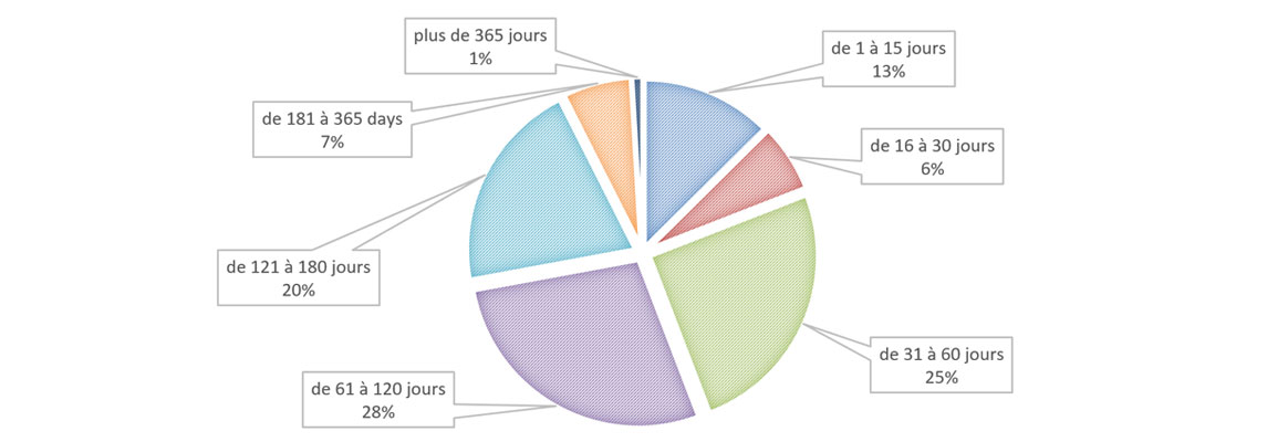 | 181 à 365 jours | 15 | 22 | 37 |