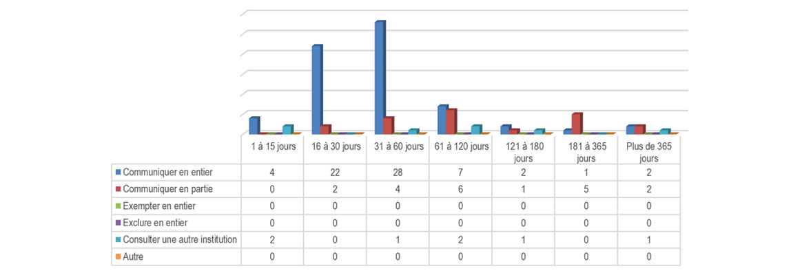 | Disposition des demandes où le délai a été prorogé | 9(1)a) Entrave au fonctionnement | 9(1)b) Consultation | 9(1)c) Avis à un tiers | |
