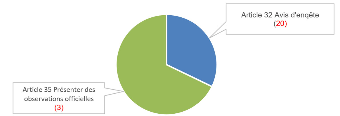 | Article 32 Avis d'enquête | Article 30(5) Cessation de l'enquête | Article 35 Présenter des observations |