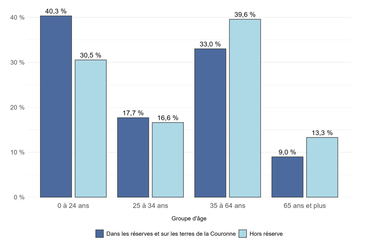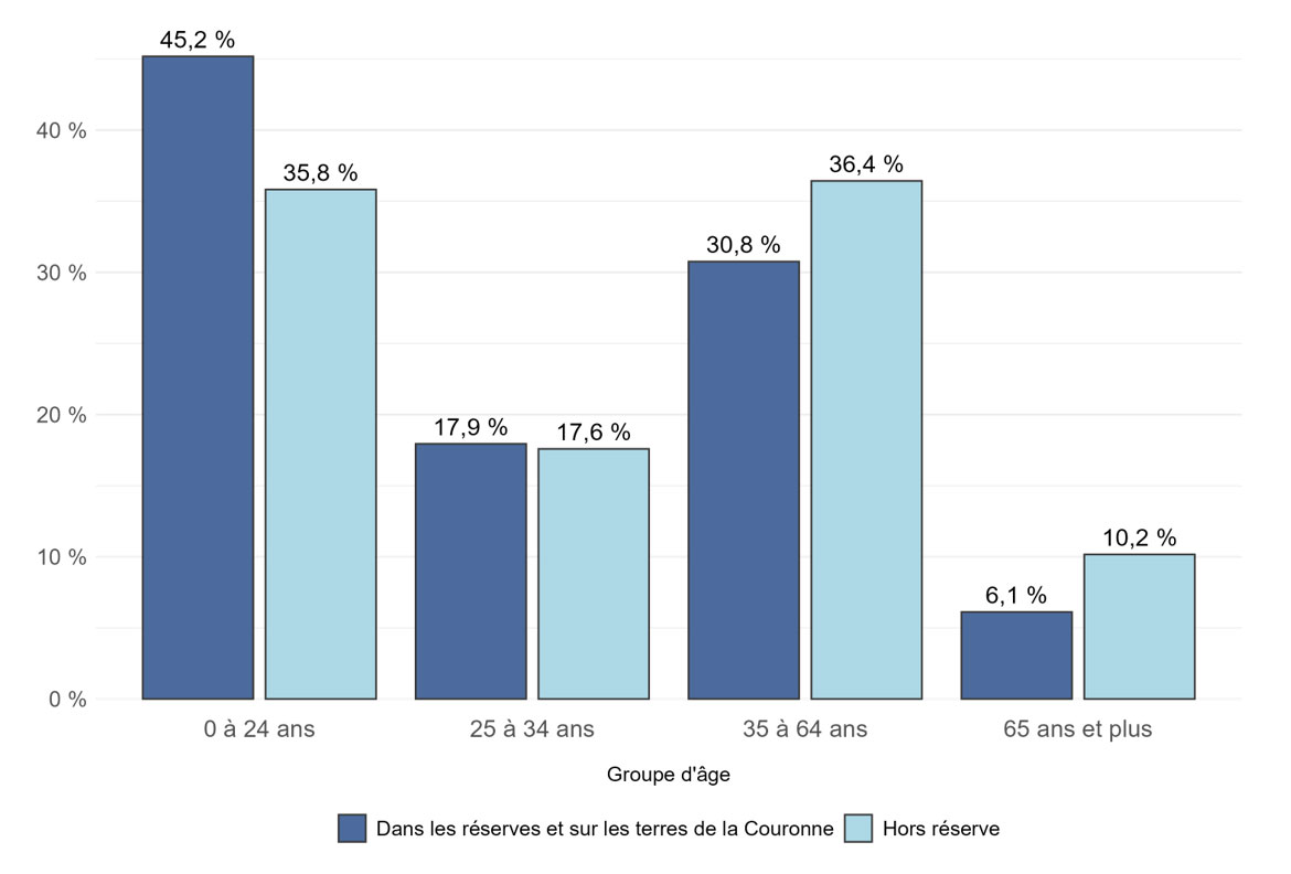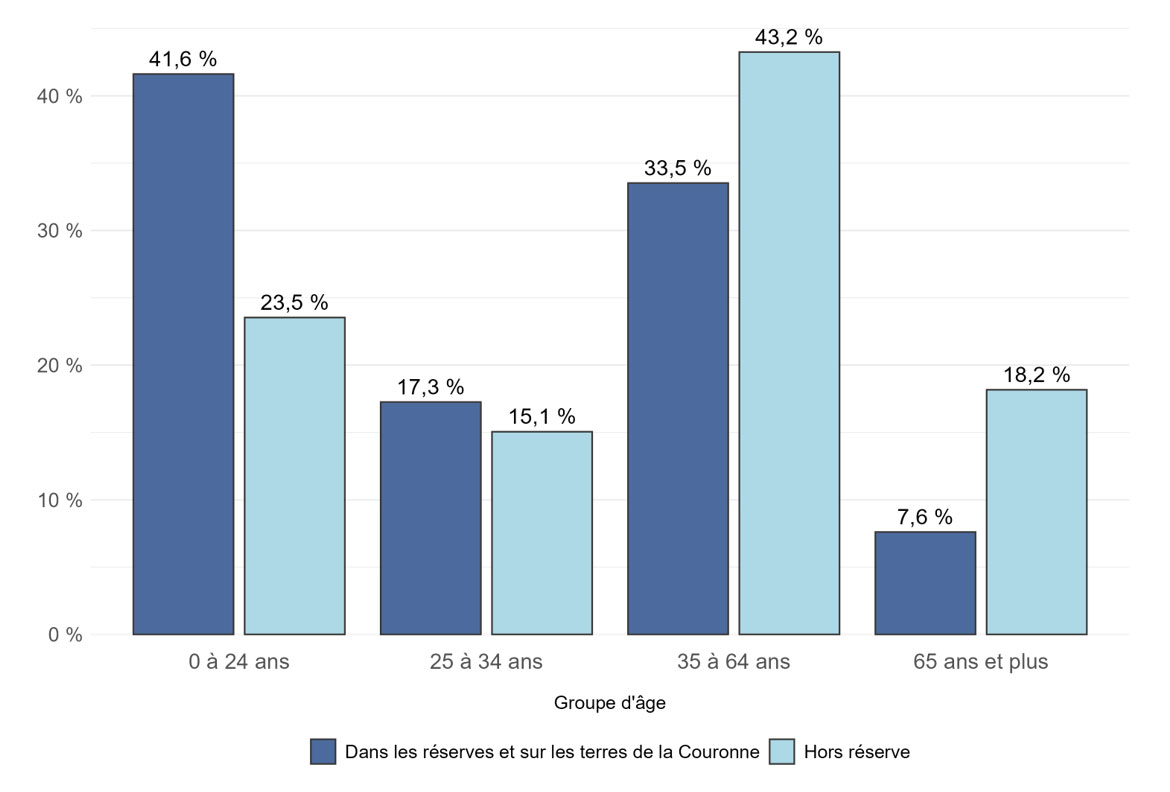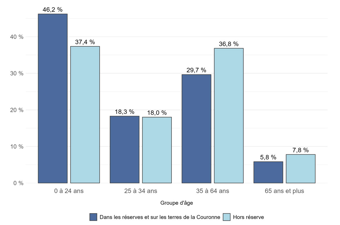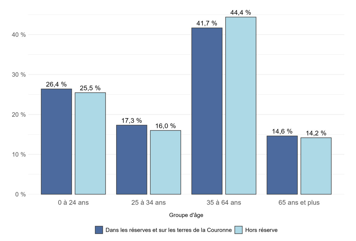 Contrairement à certains autres systèmes de SAC/Relations Couronne-Autochtones et Affaires du Nord Canada, le Registre des Indiens ne fait pas la distinction entre les réserves administrées en vertu de la Loi sur les Indiens et les terres associées aux Premières Nations et administrées en vertu d'accords sur l'autonomie gouvernementale. Techniquement, une fois qu'un accord est ratifié les terres ne sont plus considérées comme des réserves indiennes en vertu de la Loi sur les Indiens . Par conséquent, les répondants qui font partie de la catégorie « Dans les réserves ou sur les terres de la Couronne » peuvent résider sur des terres considérées comme des réserves indiennes au sens de la Loi sur les Indiens dans des établissements indiens considérés comme se trouvant sur des terres de la Couronne et sur d'autres terres associées aux Premières Nations autonomes.