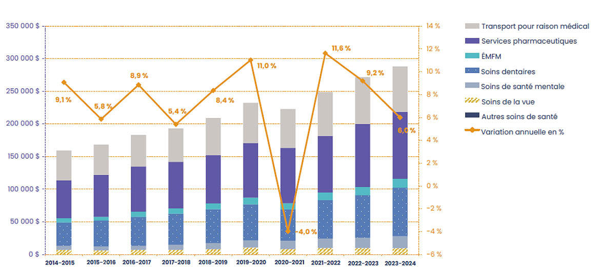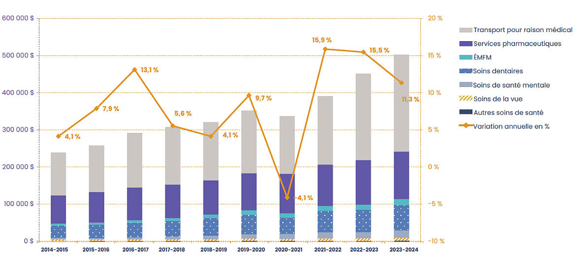 Au cours des cinq dernières années, le nombre total de clients admissibles au Programme des SSNA est passé de 887 518 en mars 2020 à 959 207 en mars 2024, soit une augmentation de 8,1 %. Le Québec a connu la plus forte augmentation de clients admissibles durant cette période, avec un taux de croissance de 16,3 %. Colombie-Britannique et la région de l'Atlantique ont suivi avec des taux de croissance respectifs de 12,4 % et de 8,3 %.