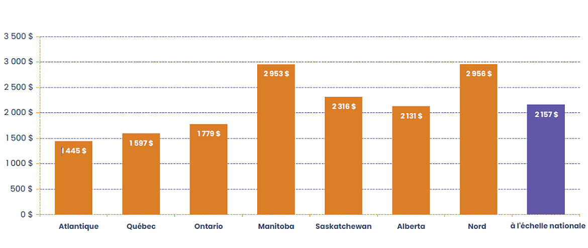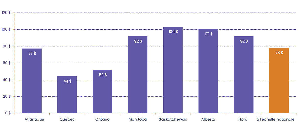 De mars 2023 à mars 2024, c'est au Colombie-Britannique le nombre total de clients admissibles a connu la plus forte variation en pourcentage, avec une augmentation de 4,0 %, suivi de le Québec et le Nunavut, avec une augmentation de 3,8 % et de 3,0 %, respectivement.