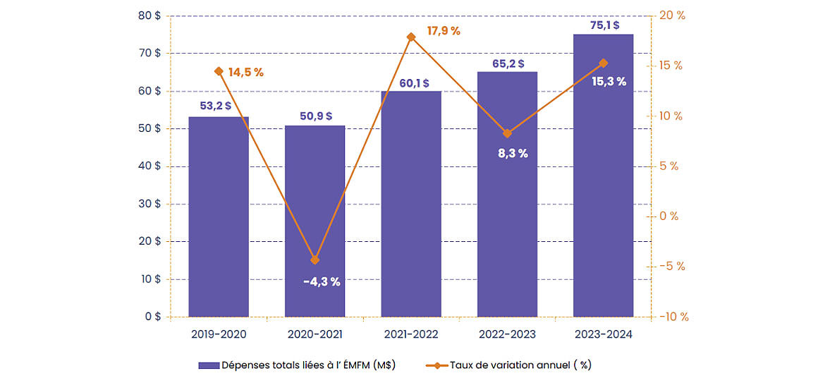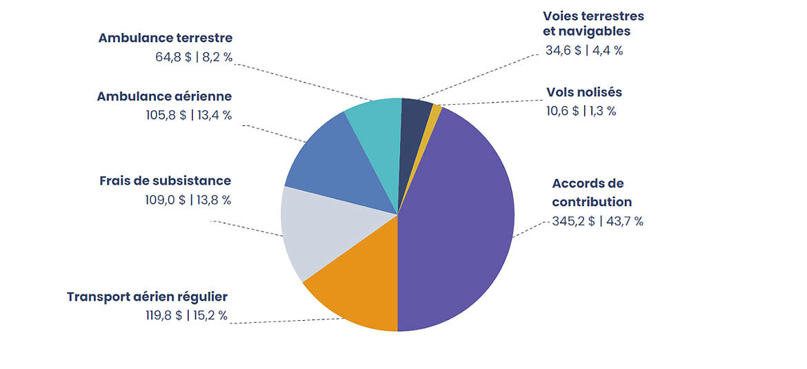 À partir de 2020 à 2021, les dépenses d'EMFM des SSNA sont déclarées séparément des dépenses liées aux services pharmaceutiques des SSNA. Ainsi, les données déclarées pour les services pharmaceutiques des SSNA ne correspondront pas à celles qu'on trouve dans les rapports précédents, car ces données comprenaient l'EMFM.