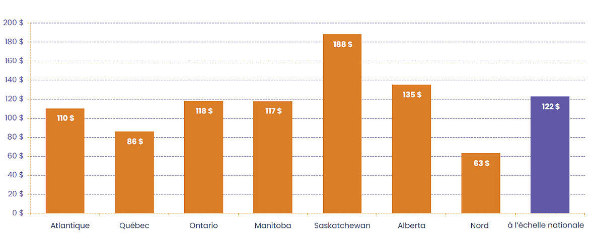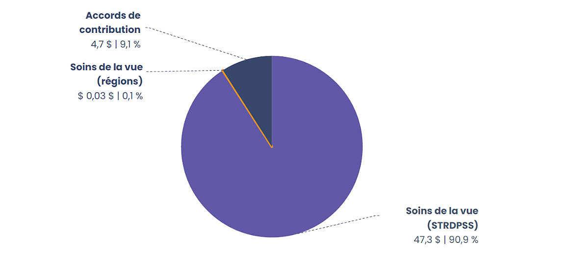 Région Services pharmaceutiques Soins dentaires ÉMFM Santé mentale Soins de la vue Total